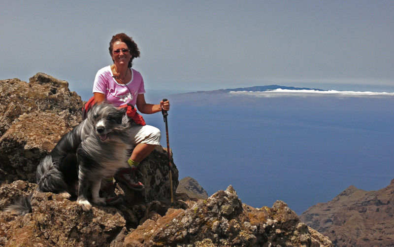 Auf dem unteren Foto sitzen wir “vom Winde verweht” auf der letzten Bergkante des “Kleinen Gala” und können im Hintergrund die Insel “Gomera” erkennen.