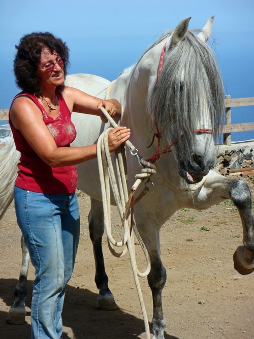 Im Juni 2009 begann ich mit dem siebenjährigen Hengst Whisky zu arbeiten, weil er leider wegen seiner Unerzogenheit und seines absolut hengstigen Verhaltens nur selten aus dem Stall geholt wurde. Hier sind Aufnahmen von meiner dritten Übungseinheit mit ihm.